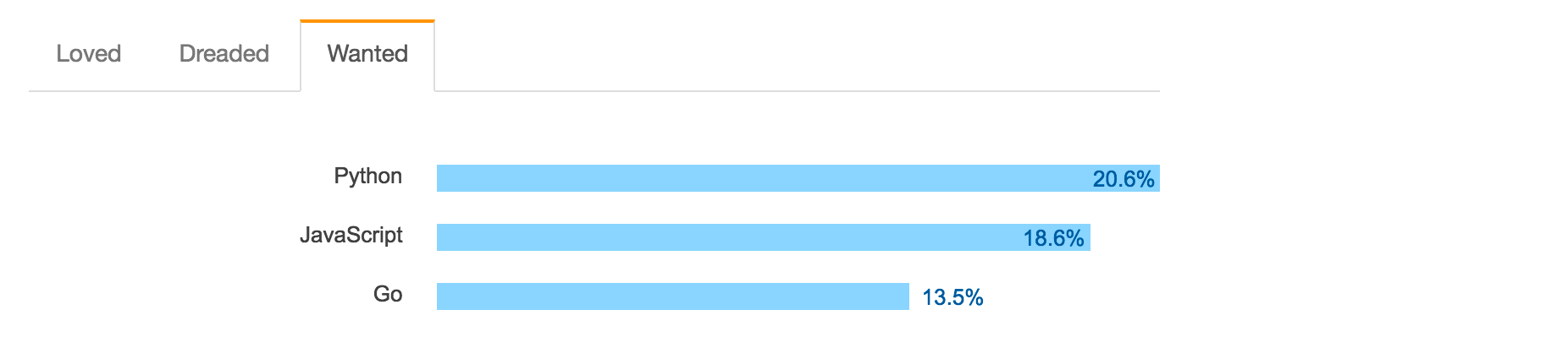 In Stack Overflow’s 2017 developer survey , Go was the only language that was both on the top 5 most loved and top 5 most wanted languages. People who use Go, love it, and the people who aren’t using Go, want to be.