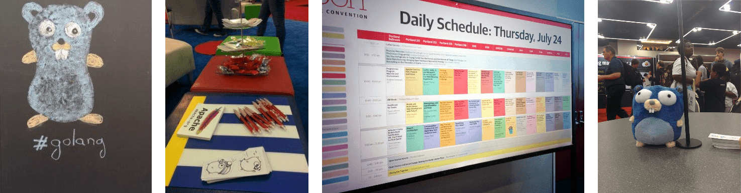 What happens in Portland in July? OSCON! At this year’s conference, Go was more present than ever before, with five talks, two workshops, a Birds of a Feather session, and a meetup.